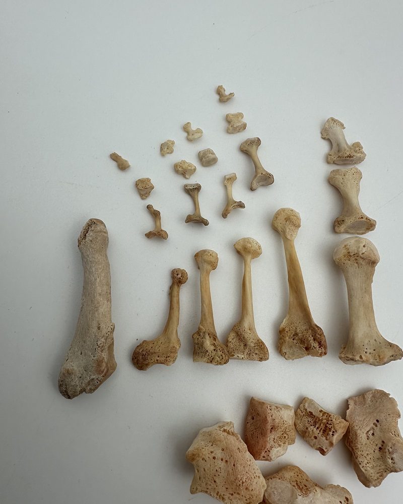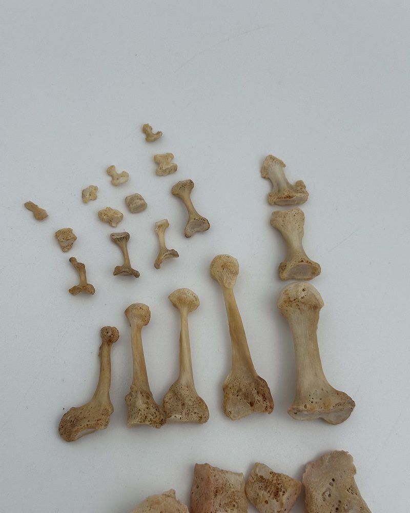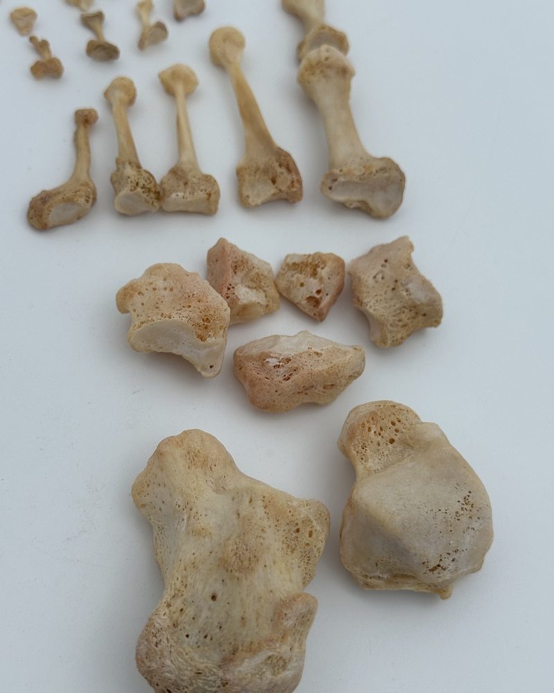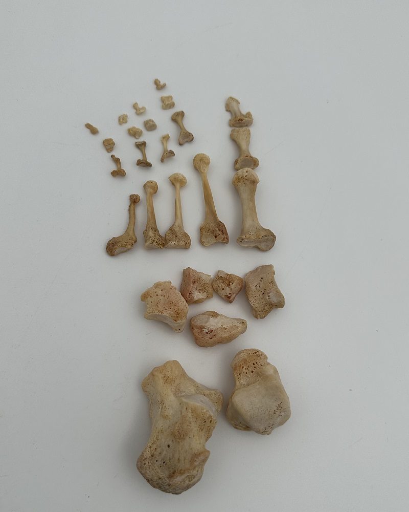 Foot skeleton - disarticulated, extremely small and rare. A comparison bone of the 5th metatarsal from a normal adult size image # 15D.