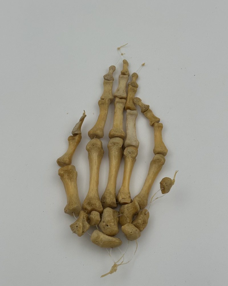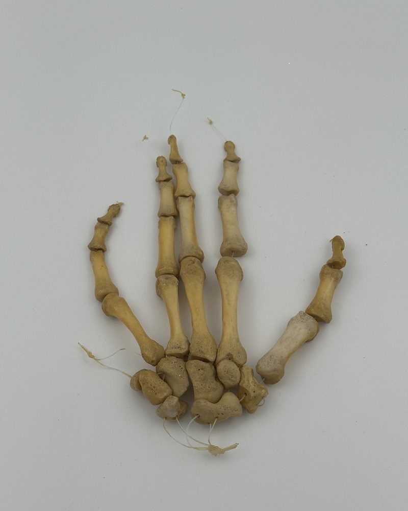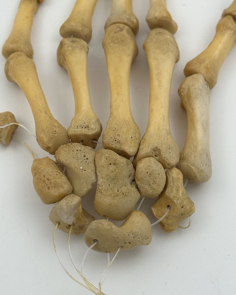 Left hand loosely strung with nylon string. Perfect bone structure, all 27 bones present.