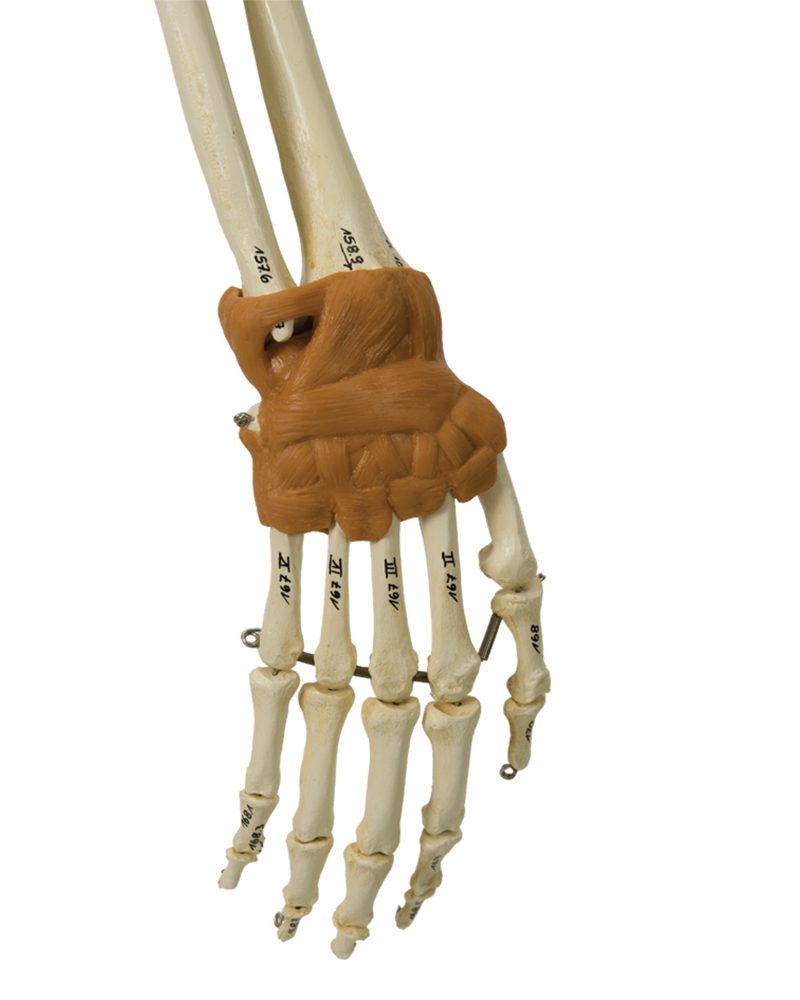 Together with the muscle numbering, there are 600 hand-numbered and identified anatomical details. Additionally, it comes with lifelike muscles of the head and neck. To top it off, the skeleton is supplied on a heavy-duty 5-leg stand with locking casters, and includes a dust cover for proper storage.